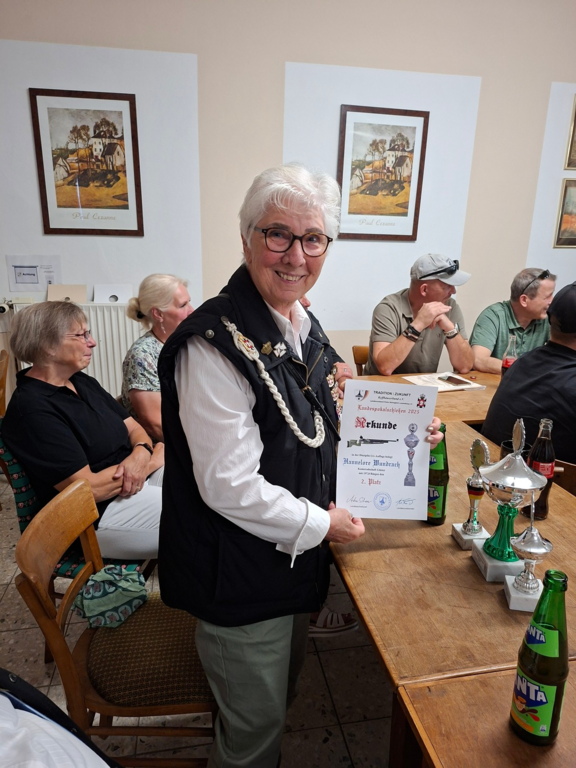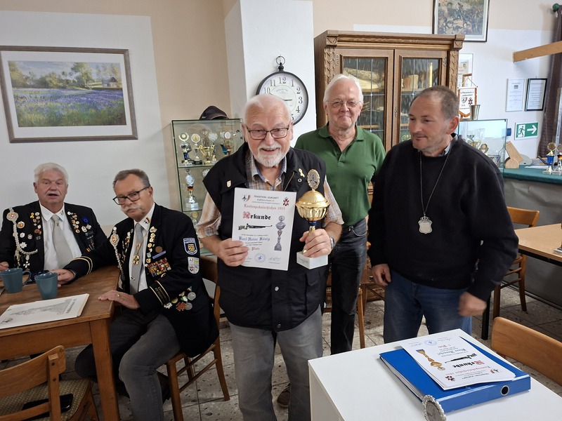Der Landesschießwart hatte zum 30. August 2025 zur Siegerehrung der Landesmeisterschaft 2025 und zur Königsproklamation 26/26 auf den Schießstand der KK Güster von 1959 eingeladen. Zugleich stand die Ehrung für das Landespokalschießen auf der Tagesordnung! Nach der Siegerehrung für die Landesmeisterschaft und das Landespokalschießen stand als Höhepunkt die Königsproklamation im Vordergrund! Der Landesschießwart konnte 38 Kameradinnen und Kameraden aus dem Landesverband begrüßen! Für das leibliche Wohl mit Kuchen und Kaffee zeigten sich Bärbel und Lothar Claßen von der KK Sachsenwald verantwortlich. Kamerad Nils Schröder hatte 2 Bleche Kuchen von seiner Frau zum Verzehr mitbekommen!