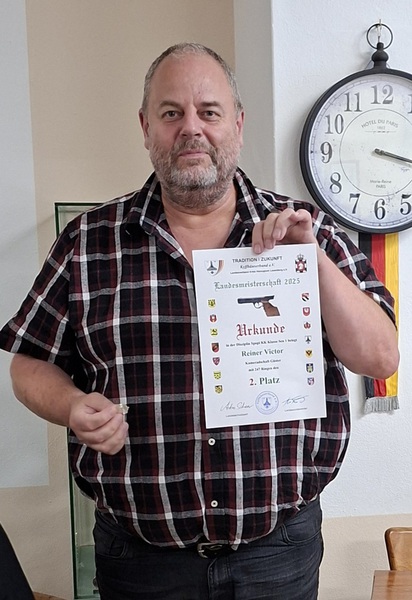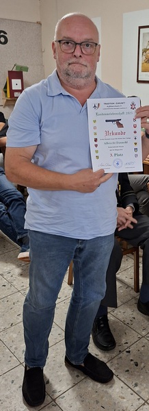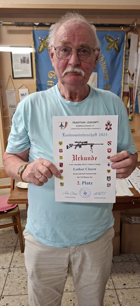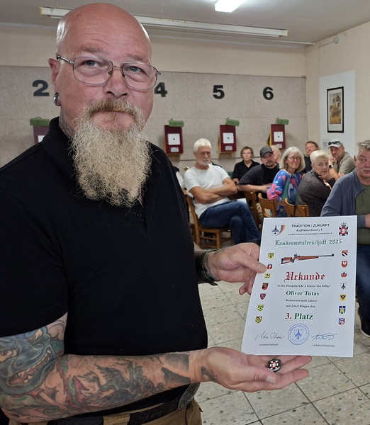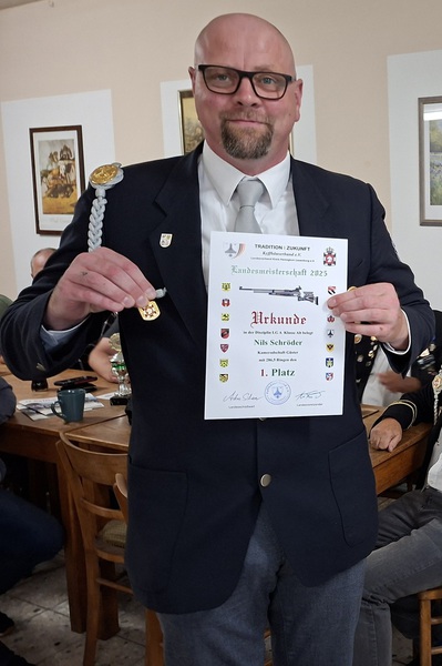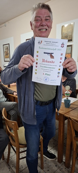 Sehr geehrter Vorsitzender der KK Güster von 1959, als mein Nachfolger in Güster bin ich der Meinung, dass Du der richtige bist und mit Eurem Schießstand immer für den Landesverband da seid! Dafür sage ich im Namen des Landesverbandes ganz herzlichen Dank! Liebe Kameradinnen und Kameraden, aus den unterschiedlichsten Kameradschaften, im Landesverband Kreis Herzogtum Lauenburg!! Heute, am 30.August, ist wieder einmal ein denkwürdiger Tag in unserem Landesverband, auf dem Schießstand der KyfhäuserKameradschaft Güster von 19595! Wir haben uns hier zusammengefunden um die Siegerehrung der Landesmeisterschaft 2025 wie schon erlebt, durchzuführen! Viel wichtiger aber ist die Proklamation eines neuen Landesschützenkönigs! Möge der neue Landeskönig mit seiner Erfahrung und seinem Engagement unser Vereinsleben bereichern und alle Kameradinnen und Kameraden zu Schießsportlichen Höchstleistungen anspornen!