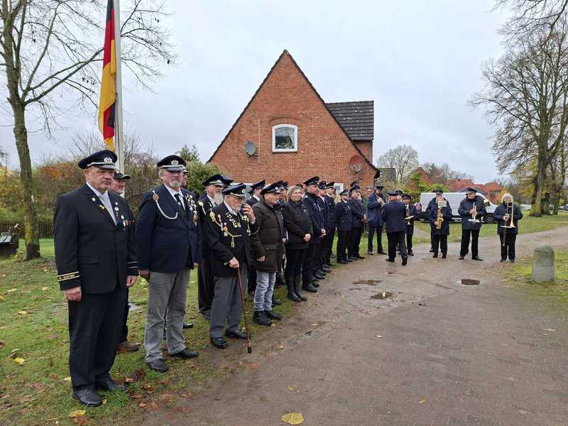 Die Verpflichtung zum Frieden, dass ist das Erbe und der Auftrag der Gefallenen und Toten der Kriege, Für diesen Frieden wollen wir mit Toleranz und Zivilcourage einstehen und überall dort aufstehen, wo er gefährdet ist. Lassen Sie uns dazu mit unseren Möglichkeiten beitragen, dieses kostbare Gut des Friedens zu bewahren. Und ich wünsche mir solche mutigen Männer und Frauen in unserem Land und in den Gemeinden Roseburg und Güster, die dann mahnend und protestierend hinsehen, die ihre Stimme am Stammtisch, hier im Gasthof, im Büro, im Laden, im Verein, auf dem Bauernhof und in der Familie erheben, wenn sich wieder Unverbesserliche und Unbelehrbare mit ihren friedensschädigenden, menschenverachtenden Parolen zu Wort melden, waren seine mahnenden und eindringlichen Worte. Er gedachte der Soldaten der Beiden Weltkriege ebenso wie der Gefallenen Soldatinnen und Soldenten der Bundeswehr, die im Einsatz ihr Leben verloren! In sein Gedenken schloss er die Opfer der Kriege in der Ukraine und im Nahen Osten mit ein. Der Musikzug der Freiwilligen Feuerwehr trug mit einem Choral, dem Lied „Ich hat einen Kameraden“ und der Nationalhymne, zu einen nachdenklichen Volkstrauertag bei.